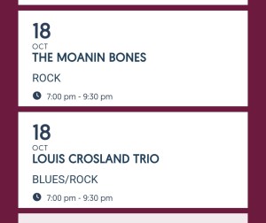 I’ll leave you now, but just one thing, totally unrelated to the above. You know how I regularly check social media so that I don’t miss any music I like …. hmmm, this Saturday evening, who to see? There’s the Louis Crosland Trio at Stramash at seven o’clock or The Moanin’ Bones at Whistlebinkies at seven o’clock. I know these details to be correct at time of writing this, maybe I’ll catch a set of each? I am very intrigued to see who’ll playing guitar with The Moanin’ Bones!! Hahaha.