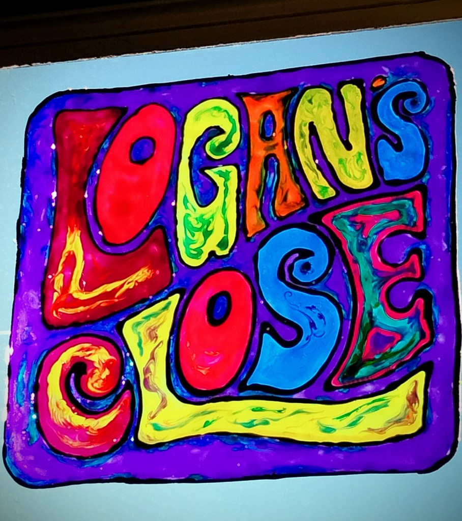 Oh, but, I wanted to show you something I did a few nights ago. See I was musing with a friend about the LC mini tour and somehow it turned into a Scooby Doo type caper (okay, there may have been alcohol inbibed), naturally, at least to us, in a psychedelic Mystery Machine. Ah ha, I cried, I know what they need! A big groovy LC logo in the window! (please note, I haven’t touched my glass paints in a few years)
