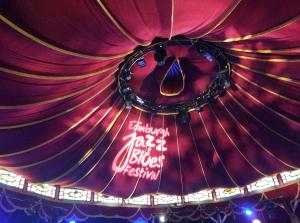 Later that same evening I was in the Spiegeltent in George Square Garden to see Tom McGuire & The Brassholes; first night of this year’s Edinburgh Jazz & Blues Festival, that tent was buzzing. I’ve not seen them before, very lively and bouncey, as were the crowd too. Come to think of it, I don’t think I’ve been to anything in the Spiegeltent before that’s all standing except for the outer booths and a few rows at the back, nope.