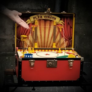 Late Sunday afternoon, the penultimate day of the Fringe, for many acts it is the final day. Earlier on the Out Of The Blue and the Improv Musical flyerers were all out in force again on the Royal Mile, come on, guys, I thought, there’s still time for something to go down. Very entertaining on the Royal Mile was a Flea Circus act that was just starting as I passed by, well, I had to go back and take a look. Not too closely mind, one look at my luxuriant fur and …. well! Doroflea, Hercuflea and Evel Knieflea are actually very skilled circus performers, an acrobat, strongman and daredevil respectively; the ringmaster was very fun with his many flea puns and he seems to treat his fleas well (I do hope it’s the same away from the showtimes).