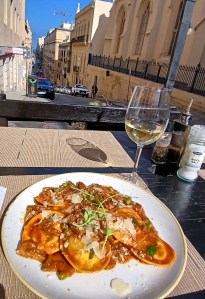 A couple of days later I had a plate of exceptionally tasty rabbit ravioli with a Maltese white at a back street restaurant in Valletta (annoyingly, I don’t remember the name but I know my feet will be able to guide me back next time). A traditional lamb stew saw me nicely full for my journey home on Sunday. Why go to a place without trying anything local?