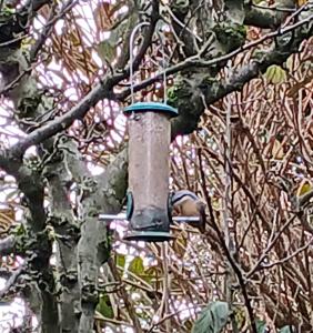 Whilst down, I was also under instruction to not let the garden birds go hungry! (this will also be pointed out to whoever buys the house) Mother had two bird feeders in a little tree postioned in sight of the kitchen window. The view takes away the drudgery of washing up, it can also slow the job right down as one stands enchanted by the birds. There’s house sparrows, tree sparrows, dunnocks, a robin, the occasional blackbird, blue tits, coal tits, great tits, a whole gang of goldfinches (six or seven always turn up together) and a pair of nuthatches. I was leaving all the evenings washing up to do in the mornings (okay, so I often do, but this time it really made sense!).