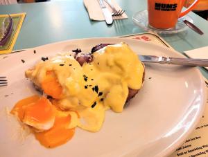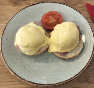 I shall leave you with an Eggs Benedict update. I was going to go to Em’s Kitchen but there was a queue waiting to go in! Er, no, so I went up on the Royal Mile, left or right? I knew everything on offer left so I turned right and headed down the hill. Not far down on the left-hand side there’s a cafe called Luscious, some how it’s never caught my attention before, I crossed over to check out the menu, oh yay! Went in, no menu perusing necessary, thanks, Eggs Benedict and a latte, please. And here it is, pure and simple, just an slice of tomato with it. Perfection on a plate and in my tummy 💛