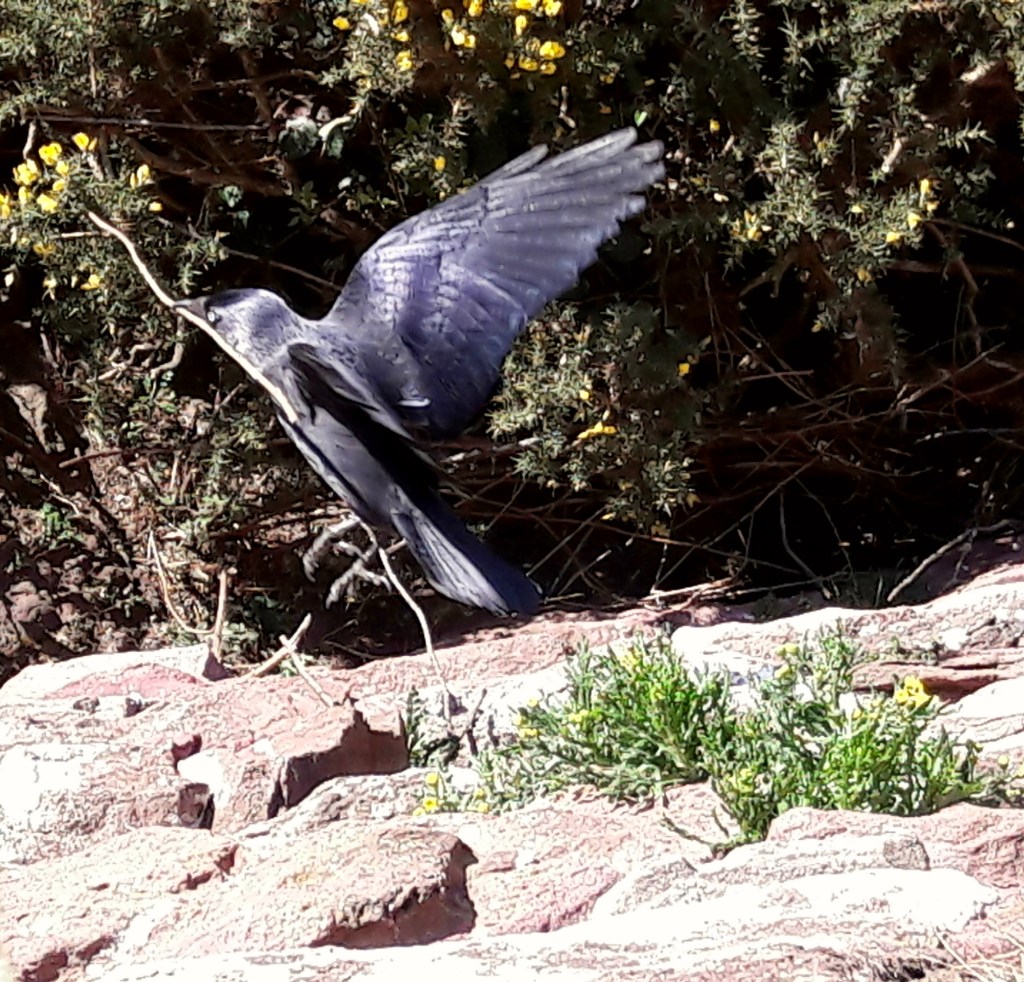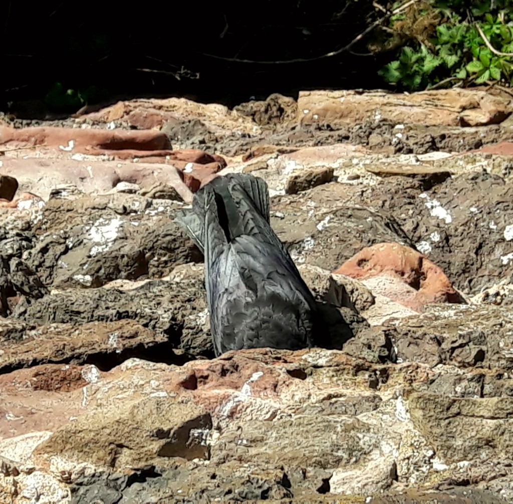 The jackdaws are all busy sprucing up their accommodations, going back and forth from the crevices in the wall below the Queens Drive as the road starts down towards Powderhouse Corner. As soon as one peeks over the wall there’s usually a flurry of jacks taking off but I think they’re getting used to me now. I always bid them good day and tarry a while to enjoy their noisy banter and aerobatic skills. I think some folk wonder what on earth I’m looking at as they pass by, don’t reckon the jackdaws even register with them.