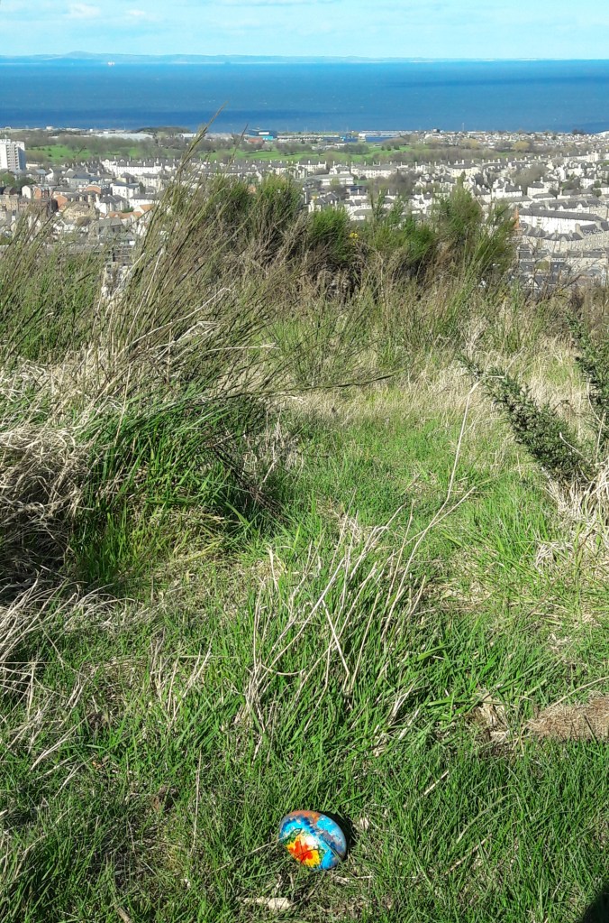Then as I headed down Whinny Hill I spotted an egg that had survived the annual rolling event and is now living feral on the hillside….