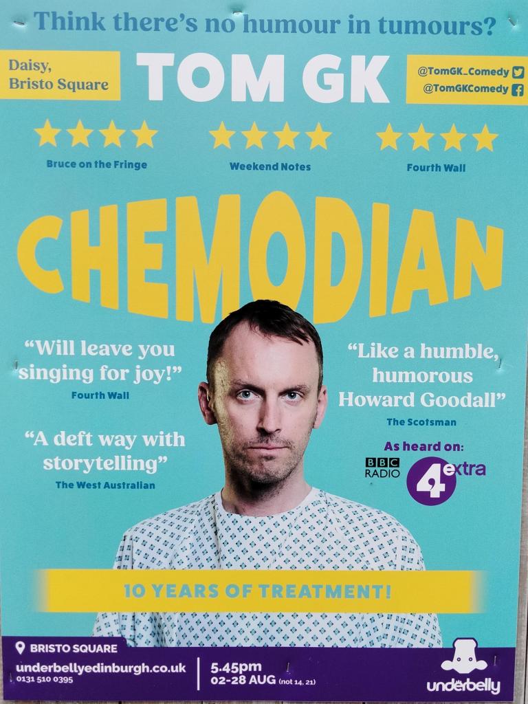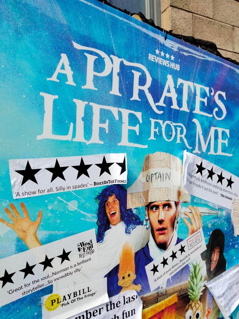 Hey there! It’s a hot, sunny day here in Edinburgh, someone turned the temperature dial back up! I’m inside, oh, sat beside a wide open window, net curtain blowing in the breeze; there’s five or six more days of this forecast, so I’m good. Been looking through my Fringe diary; forty-one shows, three repeats, flyering and all the sordid details in between.