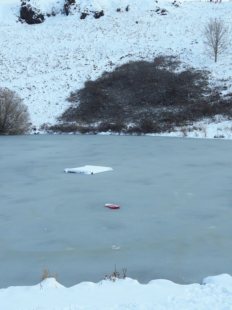 Not a smidge of snow left in town now, just the Pentlands south of the town and the hills over the Forth in Fife have a smattering left. It’s a whole ten degrees warmer than this time last week! Last Saturday Dunsapie Loch was so solidly frozen that someone had gone out on it and taken the red sledge previously frozen there. Oh yeah, and there were clear markings that someone had been ice skating on St Margaret’s Loch, not sure I would have been so brave but I wish I’d seen it!
