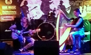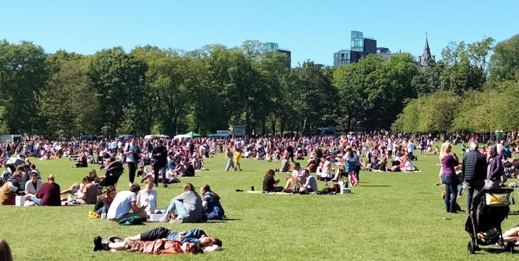Let’s just go back one day further to Saturday, a fine afternoon – until I trotted along to Waverley Bridge to see if The Kennedy’s Project were playing. They were, with extras, and they kept playing through the shower, it went on for a good (or bad?) ten, fifteen minutes or so, but it was fairly light. Lucky for me the person behind put up a brolly which nicely sheltered me from much of the precipitation. The band retaliated against the weather with Have You Ever Seen The Rain? (I’ve put a clip of it on Instagram, you can indeed see the rain on it). The extras? Dara Watson trying to keep her harp relatively dry (yes, she from Whistlebinkies a few weeks back with Bart from TKP) and Jay Supa (frontman for Supa & Da Kryptonites).
