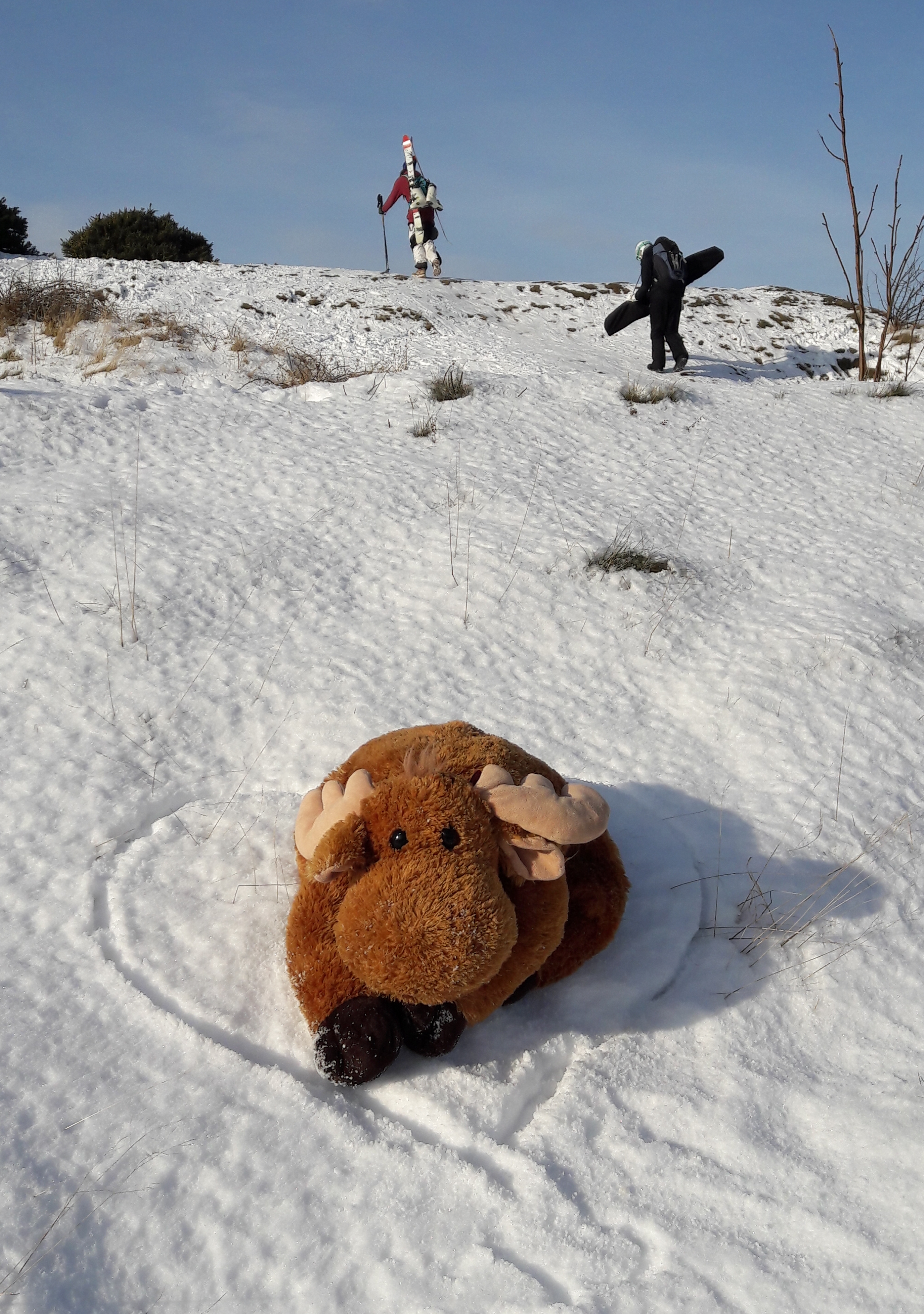 Heading down to Dunsapie Loch I spotted a snow sentinal rising up, struggling against the gusts of wind (up to 40mph the weatherman said and I can well believe him) to stay upright. He kept losing his head but he still kept going! Had to ask for a pic with him but as his face wasn’t fully formed he couldn’t reply, but who wouldn’t want a pic with li’l old me?!